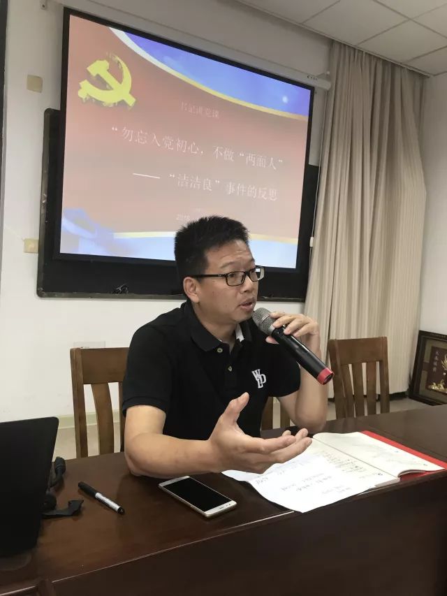 在党课上,党委书记孙辉轩介绍了“洁洁良”事件发生的缘由和经过,并从党组织和党员自身两个方面提出了自己的意见和思考。孙辉轩书记在党课上说:“青年的价值取向决定未来整个社会的价值取向,人生扣子从一开始就要扣好,尤其是青年党员。如果党员精神上缺钙,价值观上出现偏差,不仅难担重任,也不是一名合格的党员。”“洁洁良”就是因为价值观严重偏离,没有坚守住党员的基本底线,忘记了入党初心和党员使命,所以才会遭到网友及其母校的鄙夷,作为青年党员的大家要引以为戒。”党委秘书张伟在党课也表示:“一名合格的党员不仅要有开阔的胸襟,过硬的政治素质,更要以身作则,不忘入党初心,牢记党员使命,将“两学一做”贯穿生活学习的方方面面。”